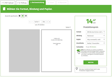 Abhängig von dem Gewicht des Papiers ändert sich dabei die Maximalanzahl an Seiten für Ihre Buchausstattung.
