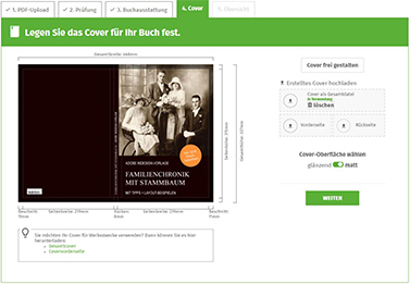Dabei ist die Gestaltung Ihres eigenes DIN-A4-Buches ganz einfach. Sie erstellen Ihre Buchinnenseiten am PC nach Ihren Vorstellungen und generieren daraus eine Druck-PDF. Ob Ihr Inhalt nur aus Texten oder/und mit Schwarzweiß- und/oder Farbbilder besteht: Sie können das Buch ganz frei nach Ihren Wünschen gestalten. Das Buchcover können Sie entweder selber im Vorfeld gestalten oder, sollten Sie kein Grafikprogramm bei der Hand haben, hilft Ihnen unser Cover Designer im Upload-Prozess schnell und unkompliziert weiter.