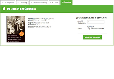 Jedes Buch können Sie ab einem Exemplar drucken lassen, aber auch mehrere Bücher können Sie natürlich bestellen. Einen ersten Mengenrabatt erhalten Sie bereits ab 25 Stück.