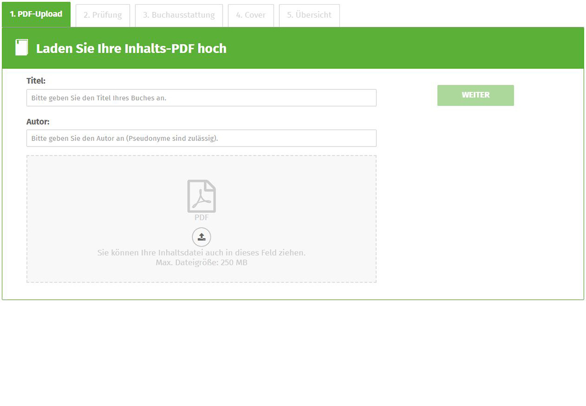 In unserem Hilfebereich erhalten Sie alle wichtigen Informationen. Darüber hinaus ist unser Support immer für Sie da und beantwortet Ihnen alle Fragen per Telefon (+49 (0) 30 617 890 200) oder E-Mail (kontakt@epubli.de).