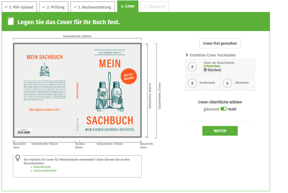Wenn Sie ein Sachbuch bei epubli drucken lassen möchten, benötigen wir von Ihnen eine druckfähige PDF-Datei des Buchinhalts. In unserem Hilfebereich finden Sie alle wichtigen Tipps und Anleitungen für die Erstellung eines solchen PDFs. Nutzen Sie gern unsere kostenlose Word-Formatvorlage, um den Inhalt Ihres Sachbuches zu erstellen. Das Buchcover können Sie während des Uploadprozesses separat hochladen oder dort mit unserem Cover Designer ganz einfach gestalten.