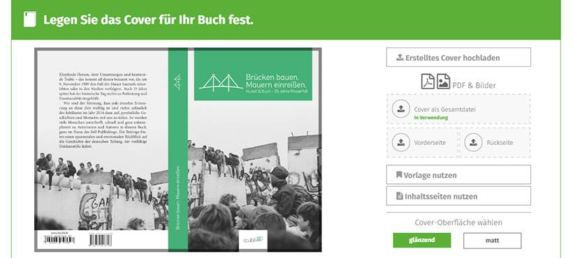 Wir begleiten Sie von der Idee bis zum fertigen Buch: Mit Schreibtipps und Inspiration helfen wir Ihnen dabei, Ihr Buch zu schreiben. Anschließend können Sie die fertige PDF-Datei bei uns hochladen oder Ihr Word-Dokument kostenlos in ein ePub umwandeln. In unserer Partnerdruckerei wird Ihr Buch in hochwertiger Qualität produziert. Sie haben zusätzlich jederzeit die Möglichkeit, unser umfangreiches Vertriebsnetzwerk für die kostenfreie Veröffentlichung Ihres Buches zu nutzen.